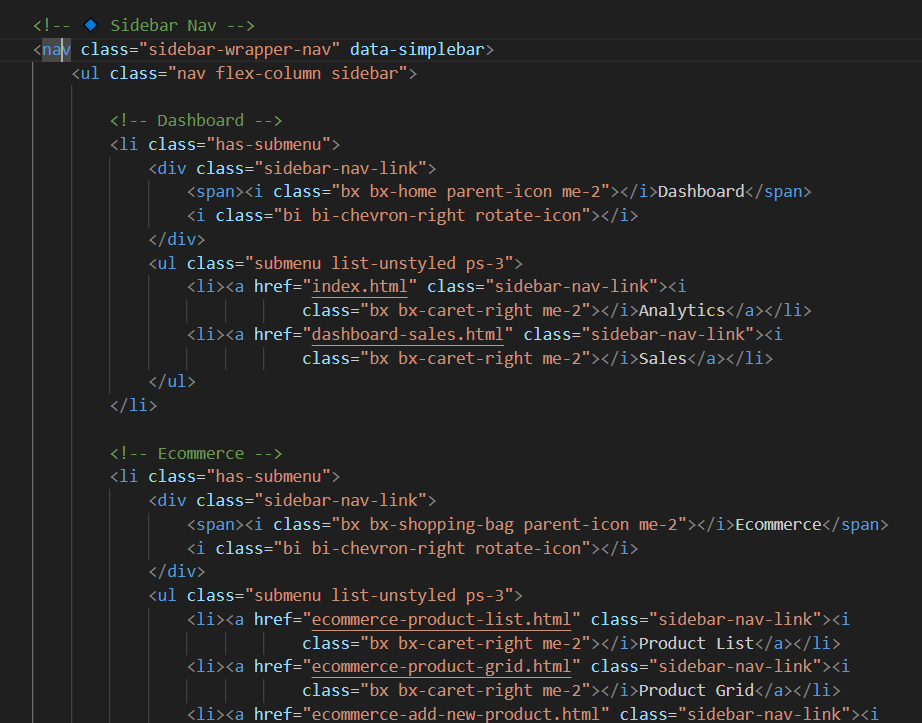 Sidebar menu items can be edited inside sidebar.html